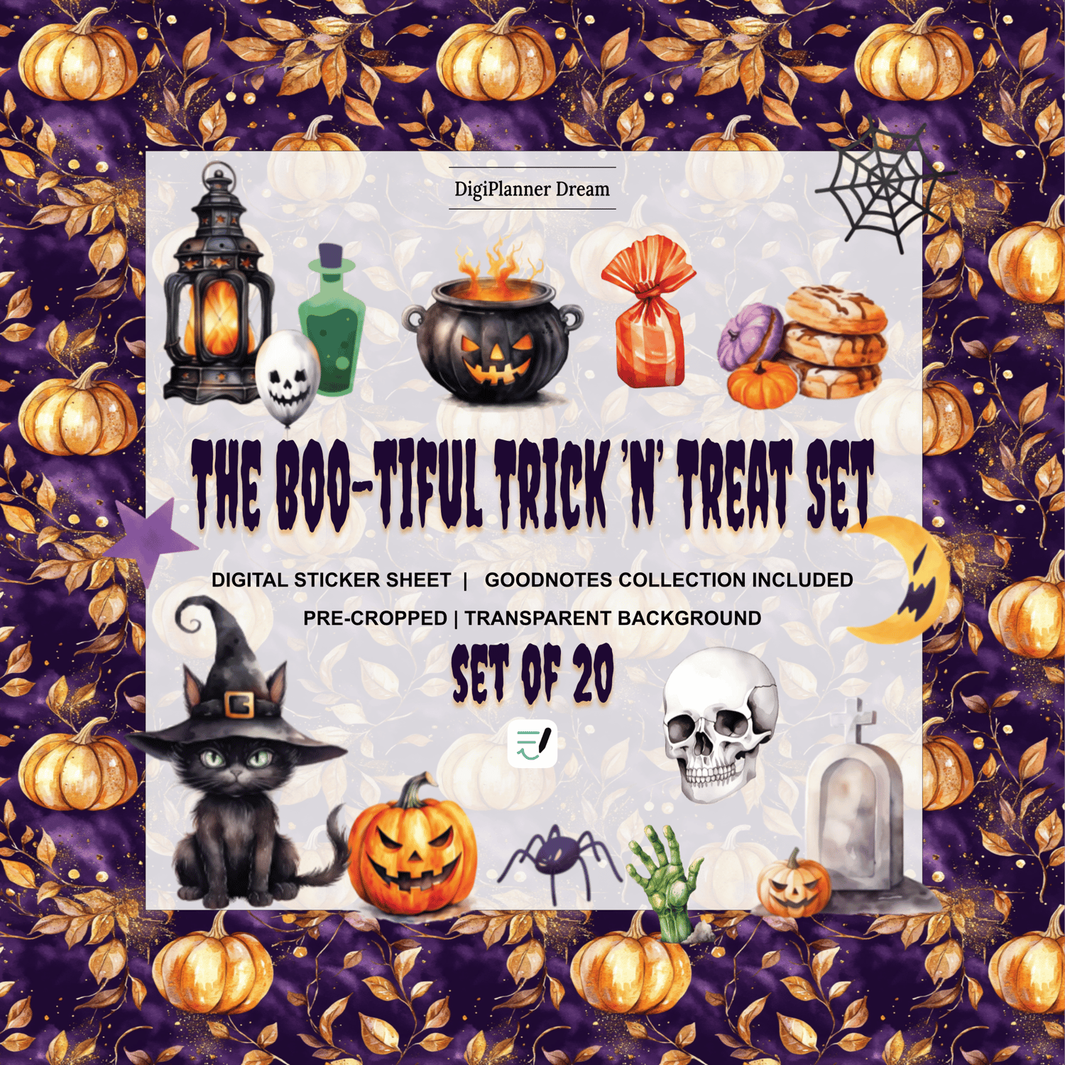 šš» Halloween Digital Sticker Set ā Boo-tiful Trick ānā Treat | GoodNotes Sticker Sheet + Collection File | 20 Pre-Cropped PNGs