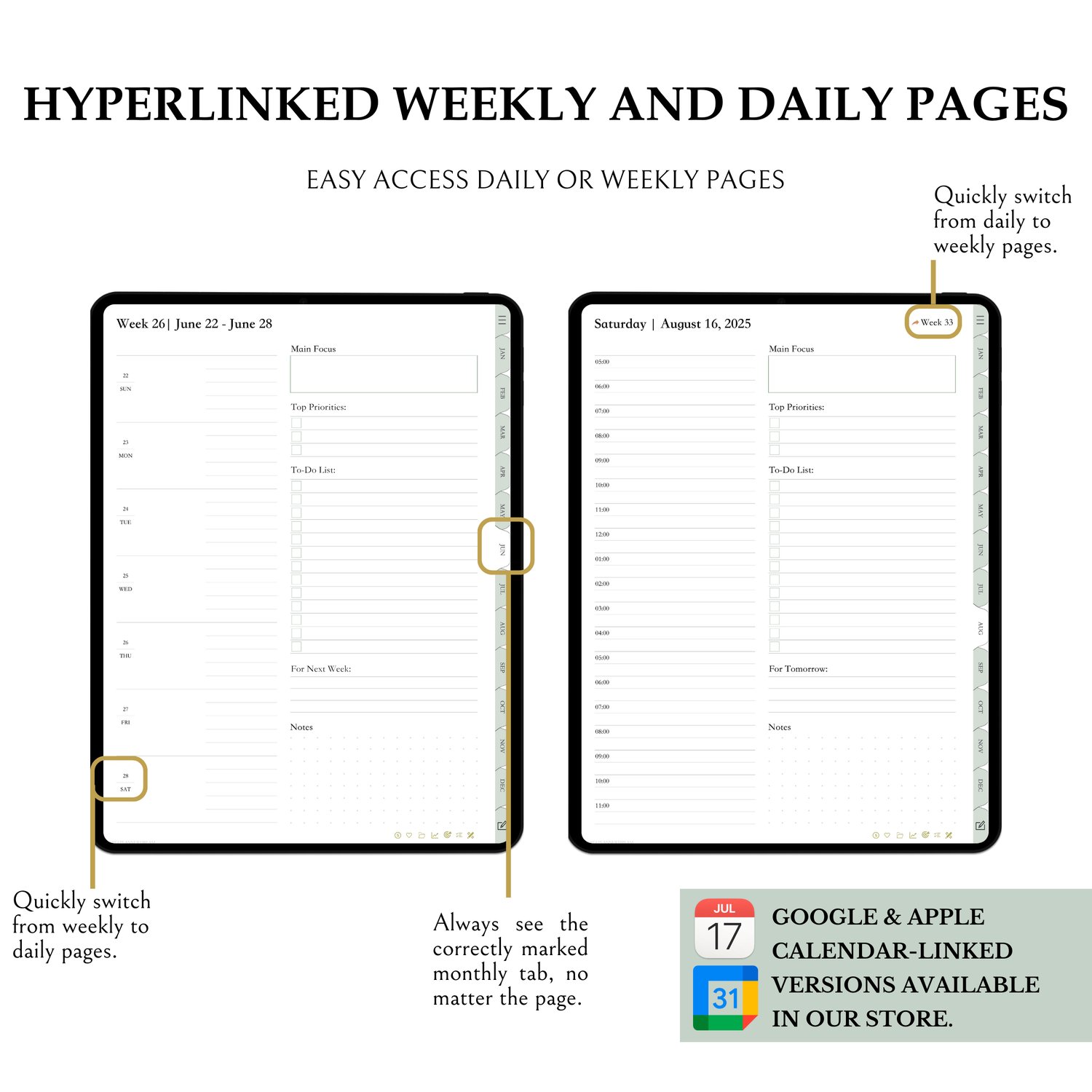 π Digital Planner 2025β2026 | Daily, Weekly & Monthly | 300 DPI | Sunday Start